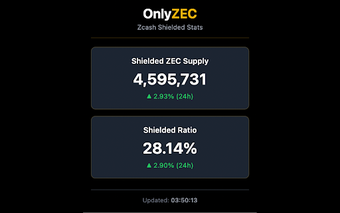 OnlyZEC هو إضافة مجانية لمتصفح Chrome مصممة لتزويد المستخدمين بإحصائيات في الوقت الحقيقي تتعلق بـ Zcash، مع التركيز على العرض المحمي ومقاييس الخصوصية. تتيح هذه الأداة للمستخدمين مراقبة إجمالي كمية ZEC المحتفظ بها في برك خاصة، بالإضافة إلى نسبة العرض الكلي التي تم حمايتها، وهو أمر حاسم لأولئك المهتمين بخصوصية العملات المشفرة. يقوم التطبيق بتحديث بياناته كل خمس دقائق، مما يضمن أن يكون لدى المستخدمين إمكانية الوصول إلى أحدث المعلومات دون الحاجة إلى حساب أو جمع بيانات.